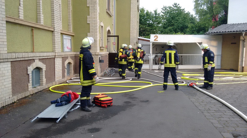Einsatzübung für unsere Atemschutzgeräteträger (AGT) in der Alten Schule in Burkhardsfelden. Es wurden 2 Personen vermisst. Die Masken der AGT wurden mit Folie abgedeckt um die Sicht im verrauchten Gebäude zu simulieren. Anschliessend wurden 2 Räume abgesucht und 2 Übungspuppen mit 15 KG und 100 KG gerettet.